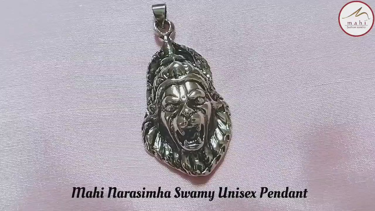 Radiate an aura of divine energy with this spiritual Laxmi Narasimha swamy pendant from Mahi. True to its name, this pendant very skillfully crafted is the very definition of simplicity and elegance. This oxidised silver plating Laxmi narsimha swamy pendant will radiate positive energy in yourself. Place your order with us and help us bring joy, peace and prosperity with a wide range of jewellery designed for you. This pendant comes without chain.