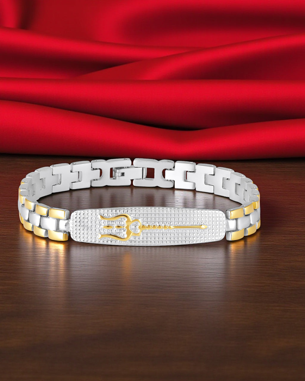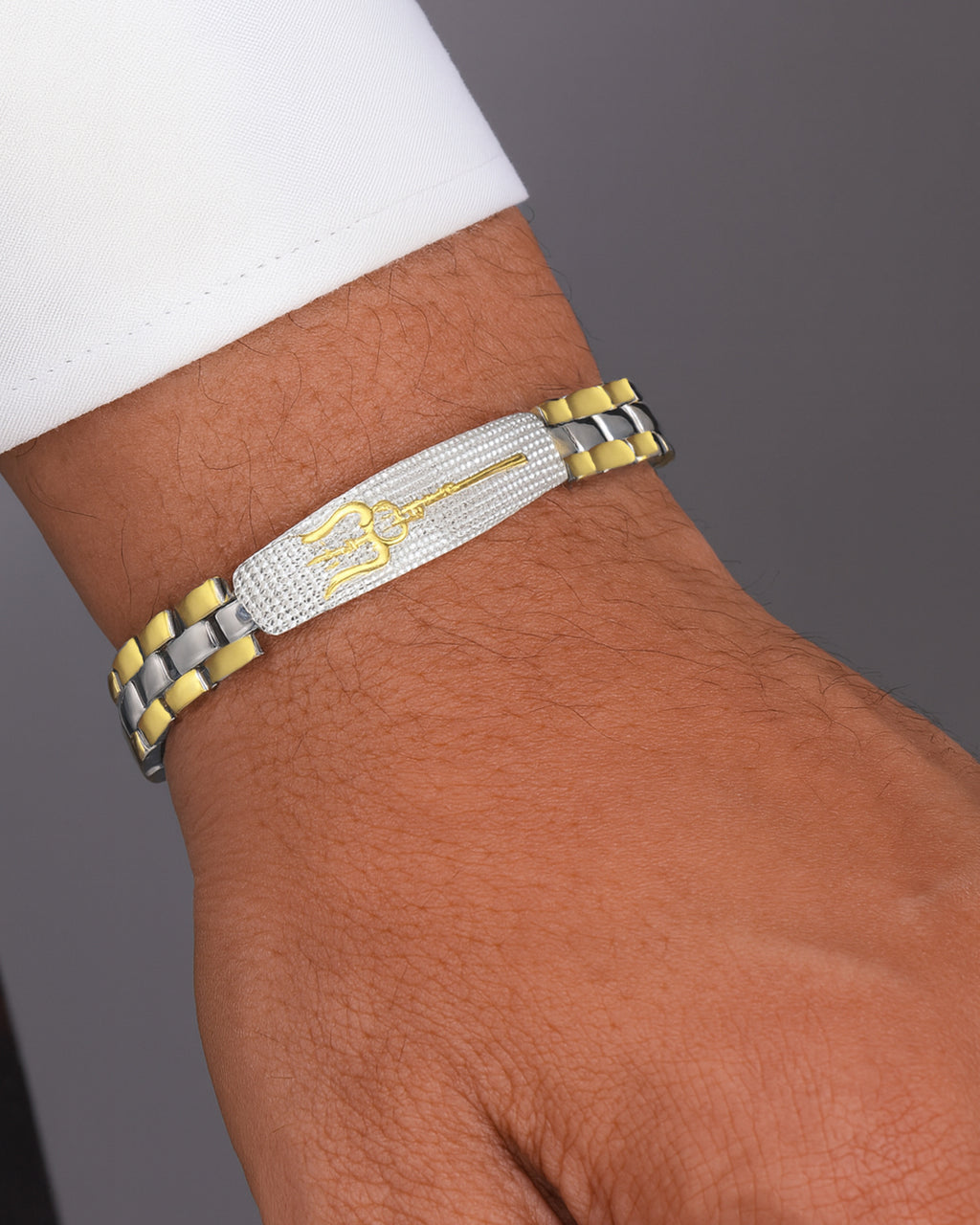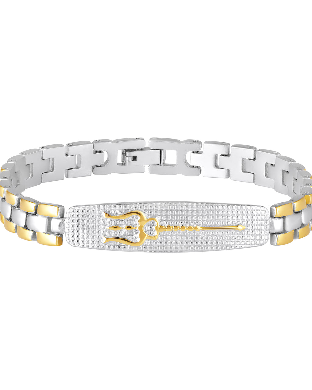 - Premium Dual Tone Trishul Textured Chain Link Bracelet