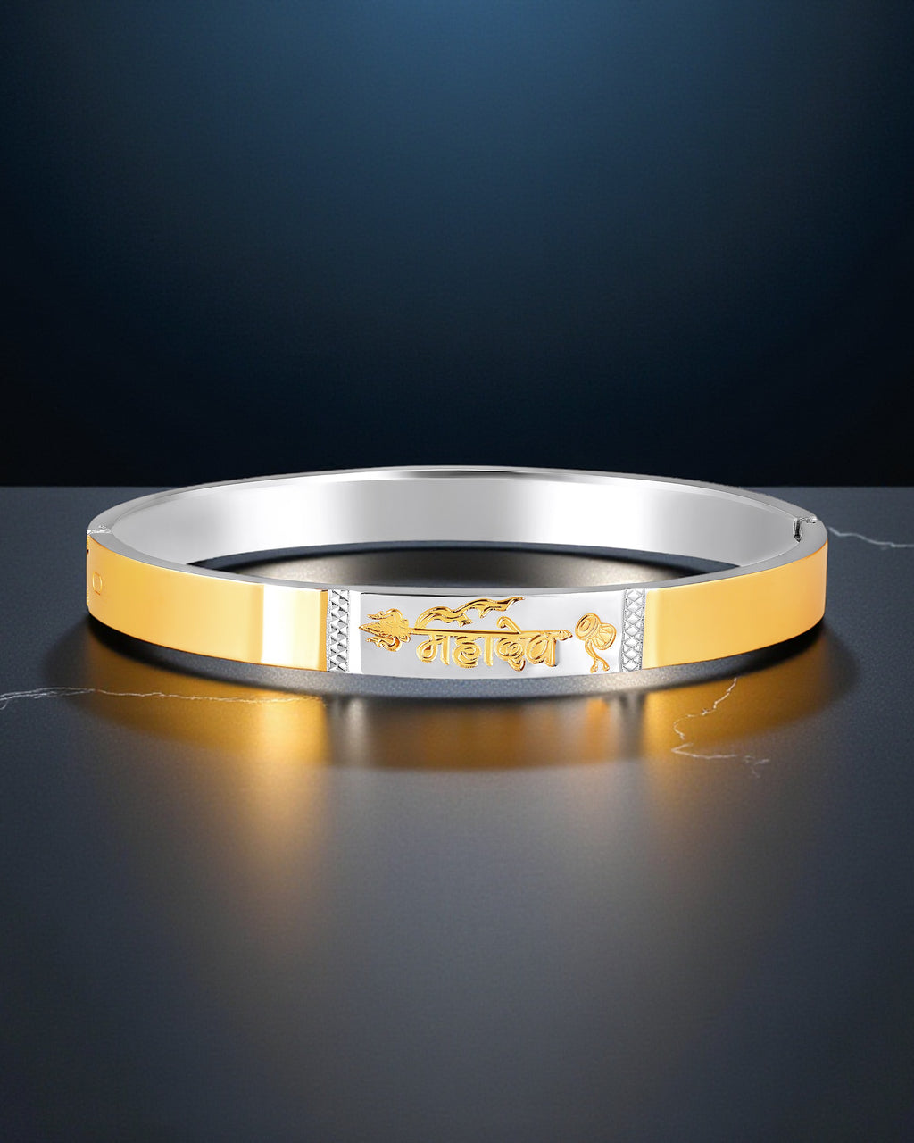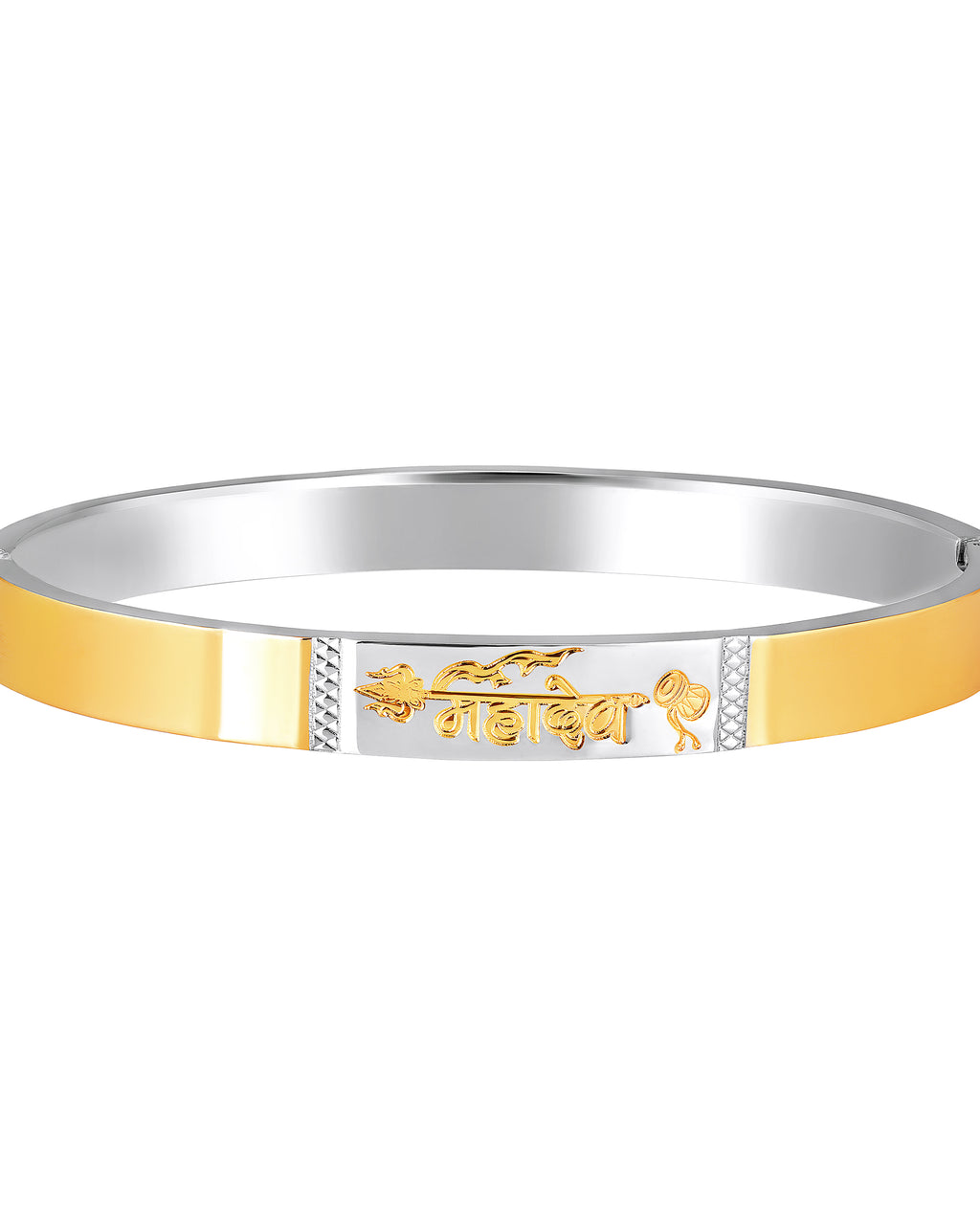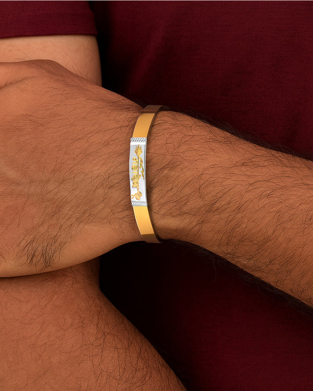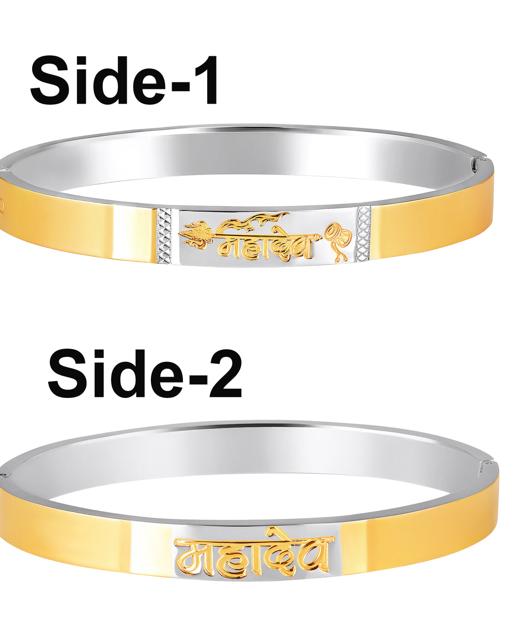 Elevate your style and spirituality with this stunning dual-tone Kada bracelet for men, featuring a unique "महादेव" (Mahadev) engraving along with religious motifs like Trishul and Damru. Crafted from premium-grade stainless steel, this bracelet boasts durability, rust-resistance, and a modern yet traditional appeal—perfect for daily wear or gifting.