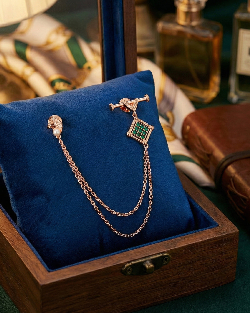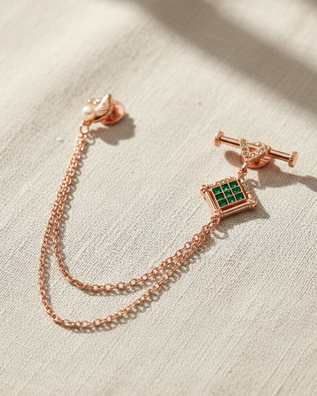 - Dual Drape Chains: Two-layer chain styling adds depth and a luxe statement on the chest/lapel