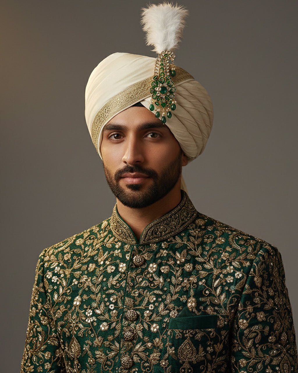 - Elegant Feather for Traditional Groom Look : Comes with a soft, elegant white feather that enhances the classic Maharaja aesthetic. Ideal for Safa, Pagdi, Pheta, or Turban styling.