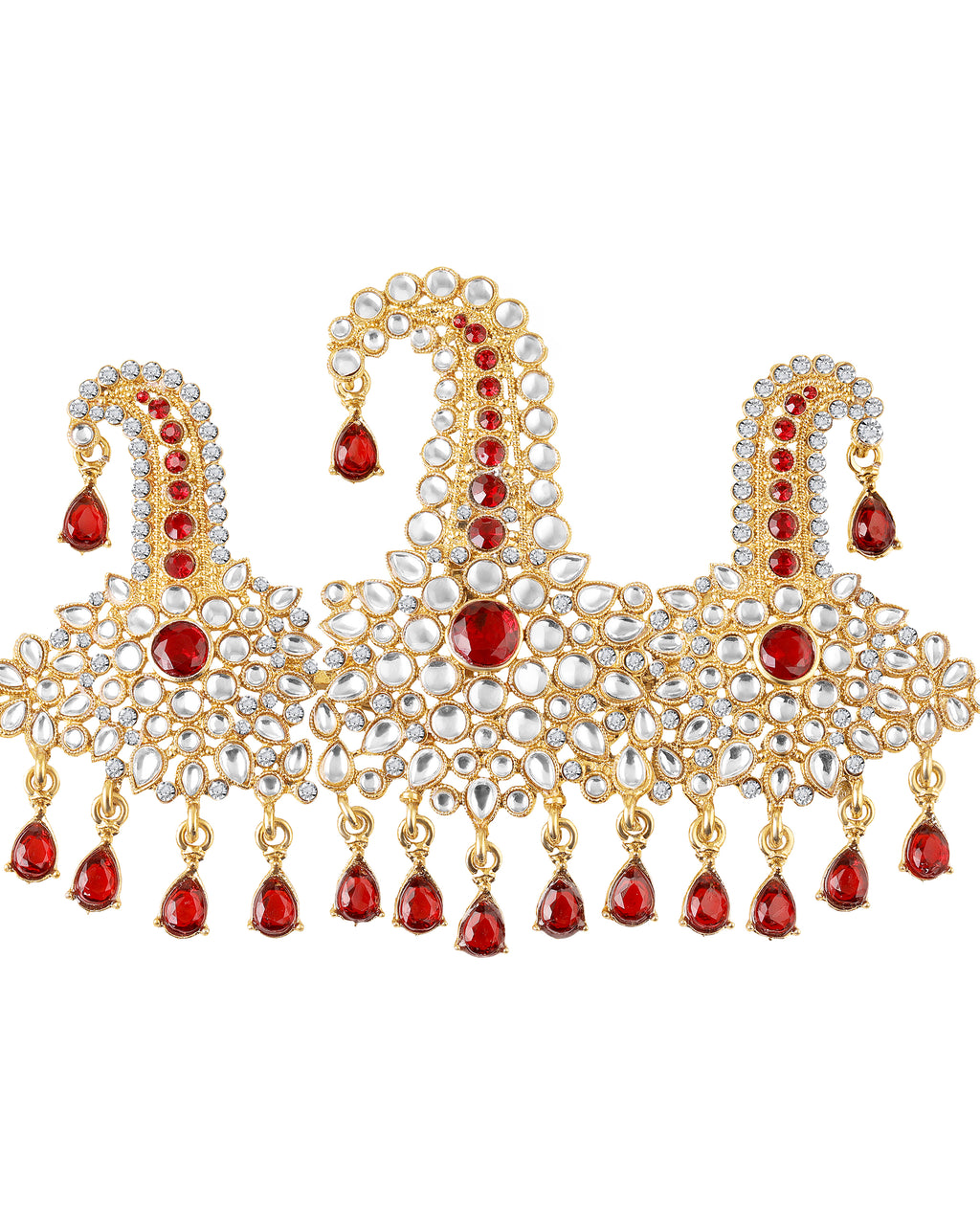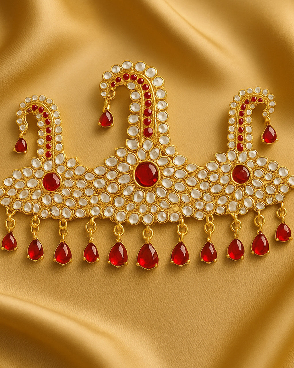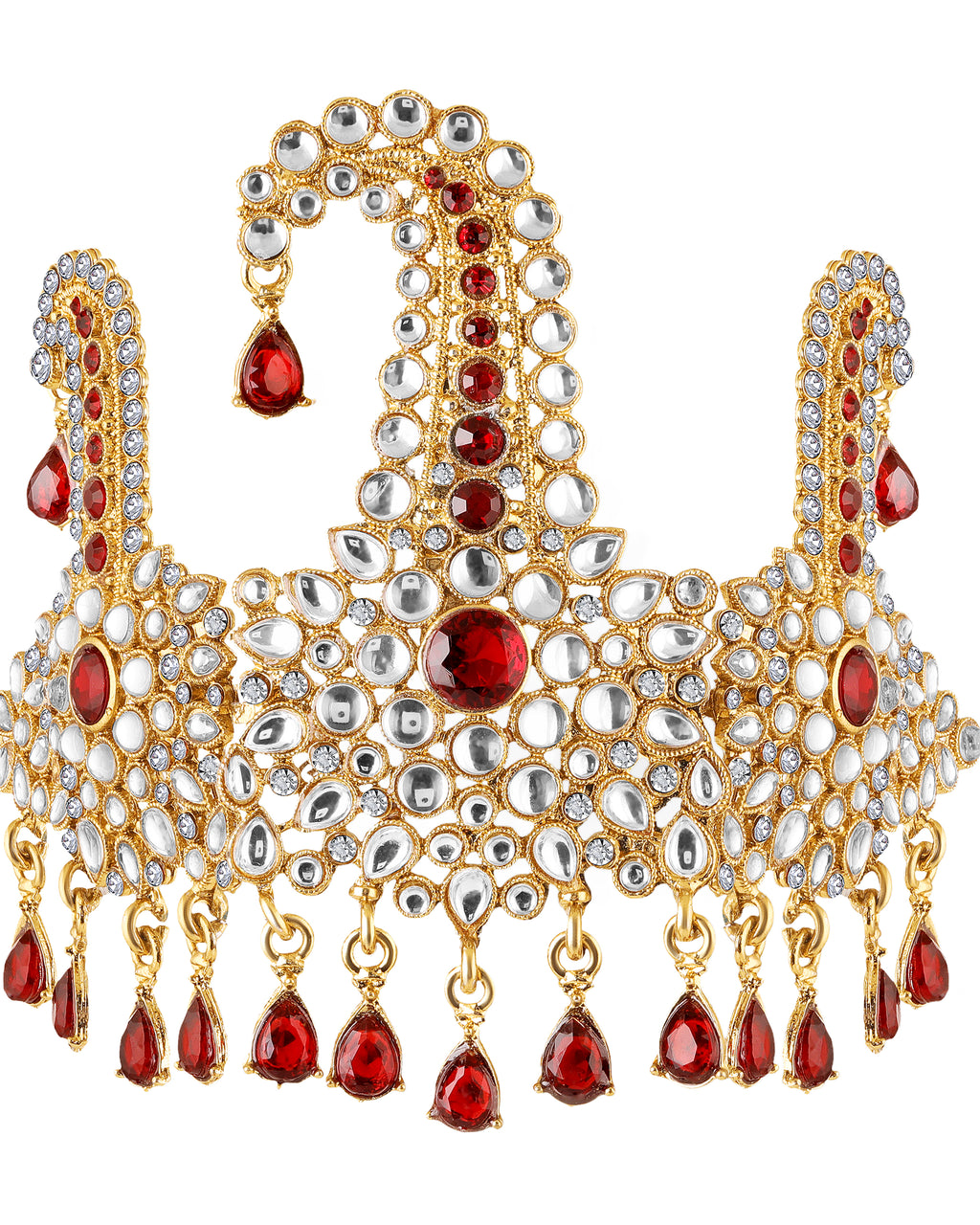 - Premium Craftsmanship: Made with high-quality crystals stones, red gems, and shining pearls set in durable gold-plated metal for a luxurious finish.