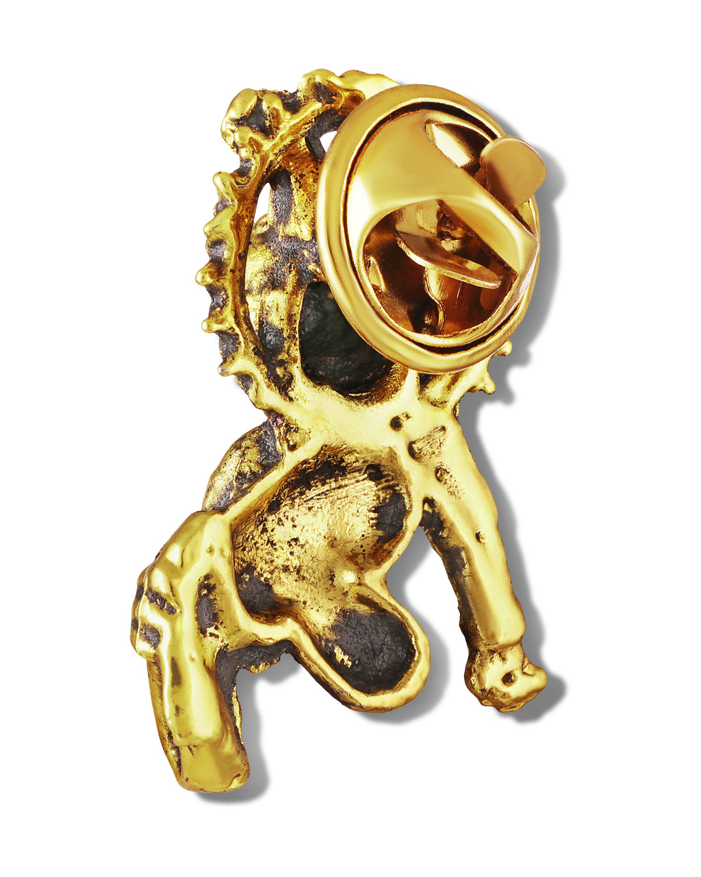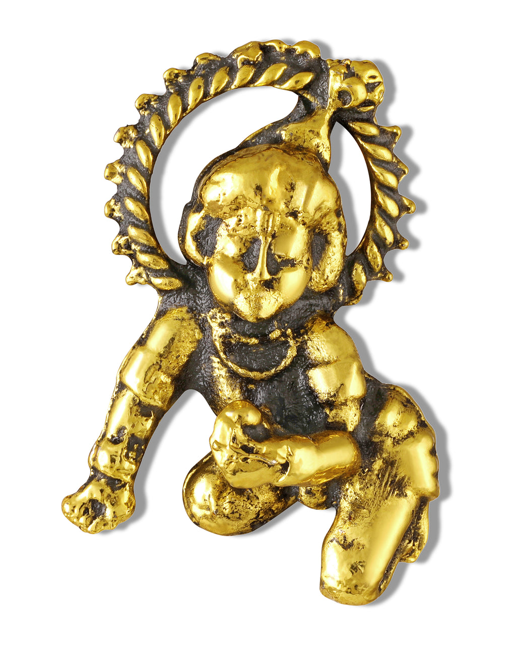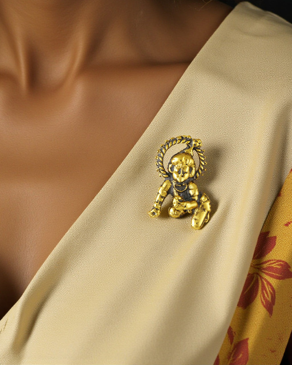 - Divine Baby Krishna Design – Exquisitely crafted gold-plated brooch depicting Bal Krishna in a crawling pose, symbolizing purity, devotion, and prosperity.