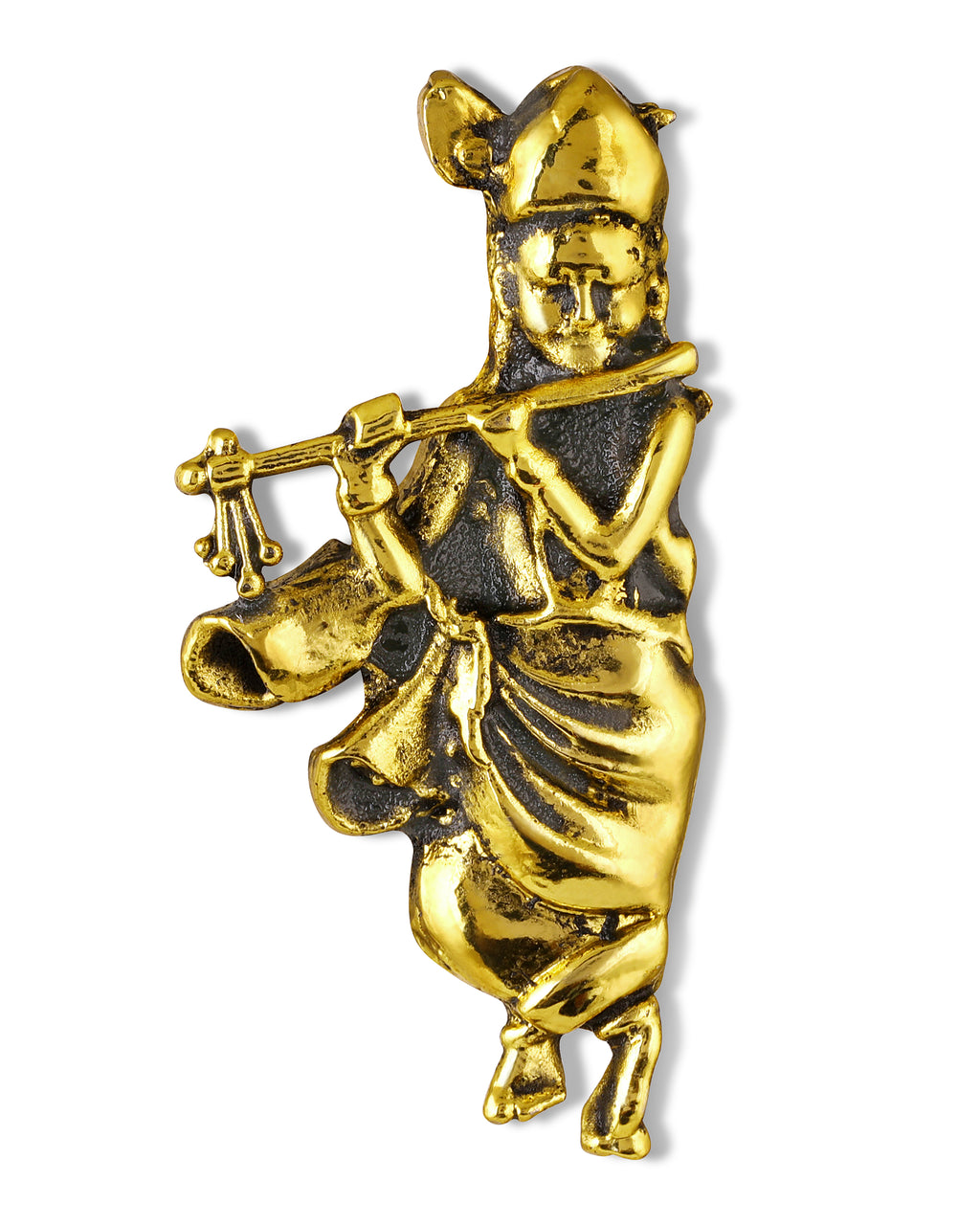 Bring home divine elegance with this Gold Plated Lord Krishna Flute Brooch, a timeless piece of jewelry that combines spirituality with style. Expertly crafted with attention to detail, this brooch depicts Krishna playing his flute. Perfect for both men and women, this brooch complements ethnic and Indo-western attire alike. Pin it on your blazer, kurta, saree, or dupatta