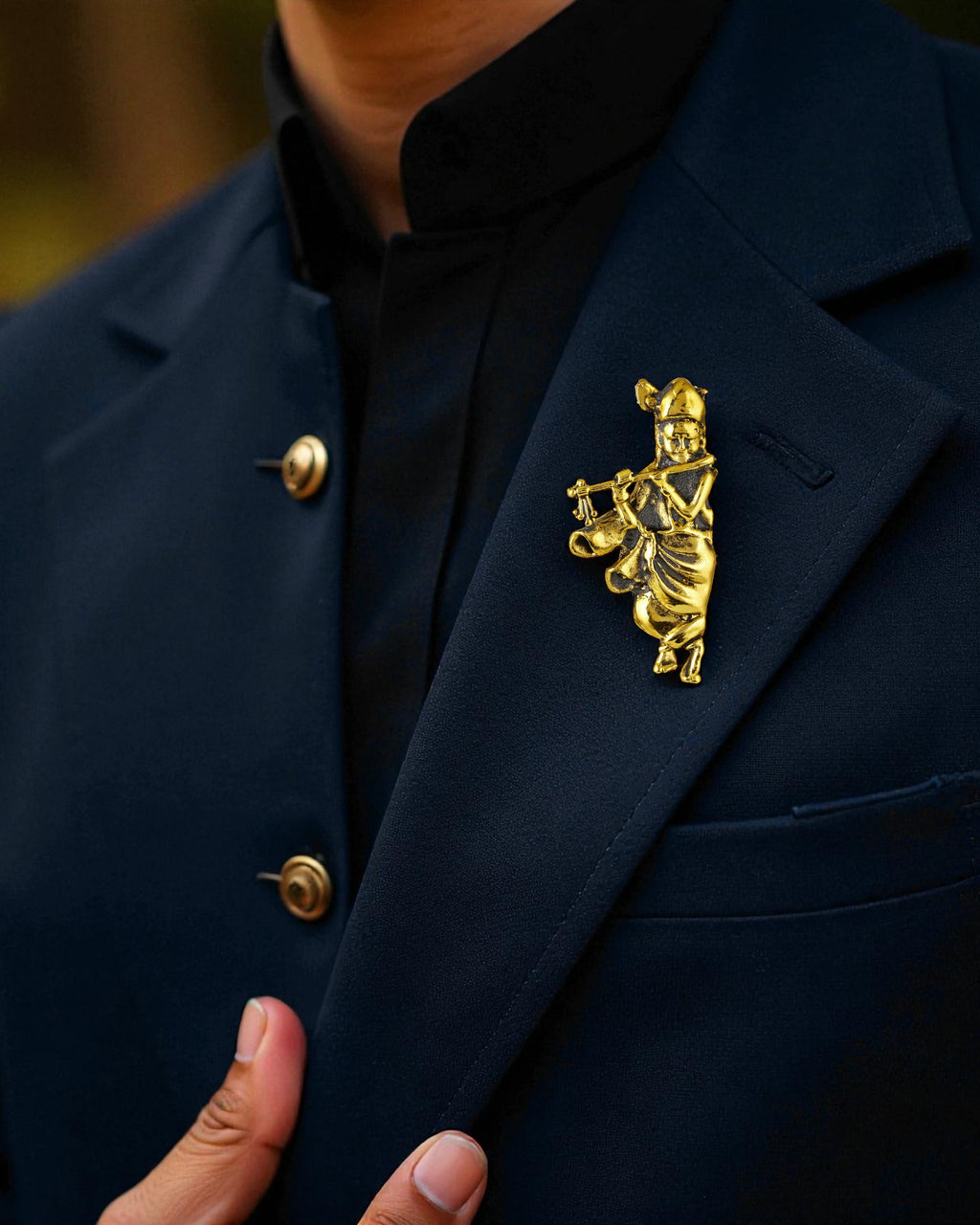 - Elegant Lord Krishna Design: Beautifully crafted brooch featuring Lord Krishna playing the flute, symbolizing divinity, charm, and positivity — perfect for traditional and festive outfits.