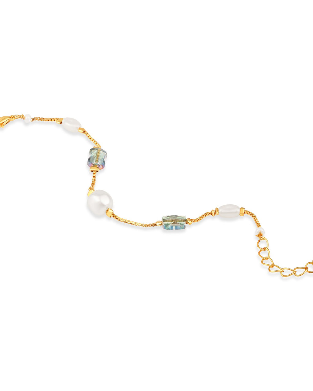 - Elegant Design: Features a delicate gold-plated chain with pearl and multicolor crystal bead accents for timeless beauty.