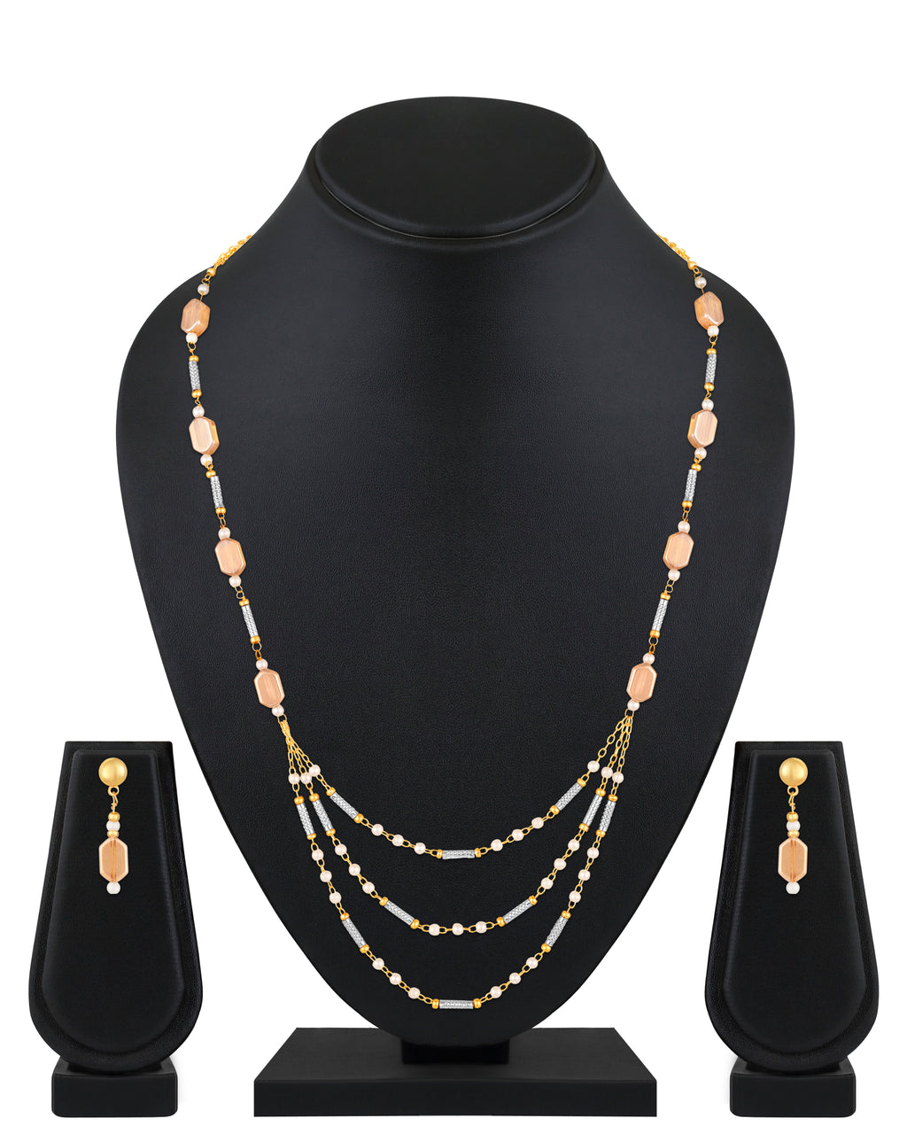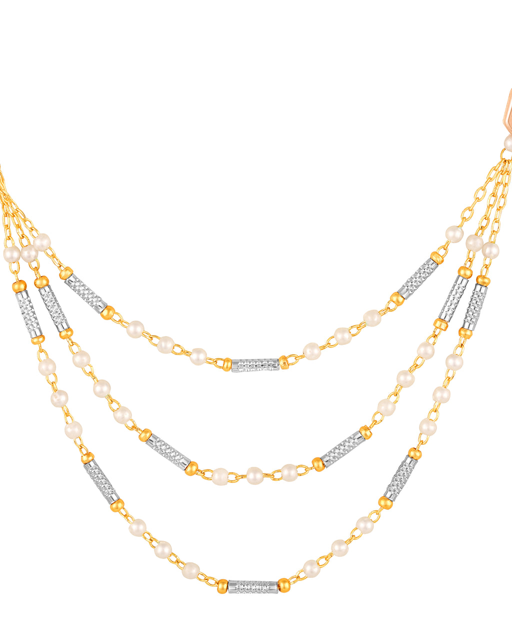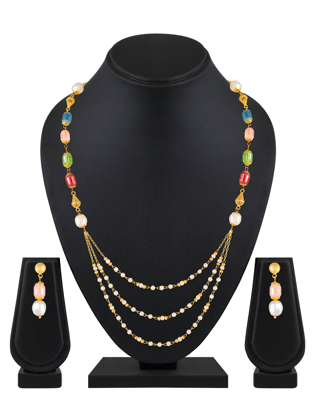 - Elegant Layered Design: Beautiful triple-layer gold-plated necklace with pearl and stone bead detailing adds a touch of sophistication to your ethnic or western outfits.