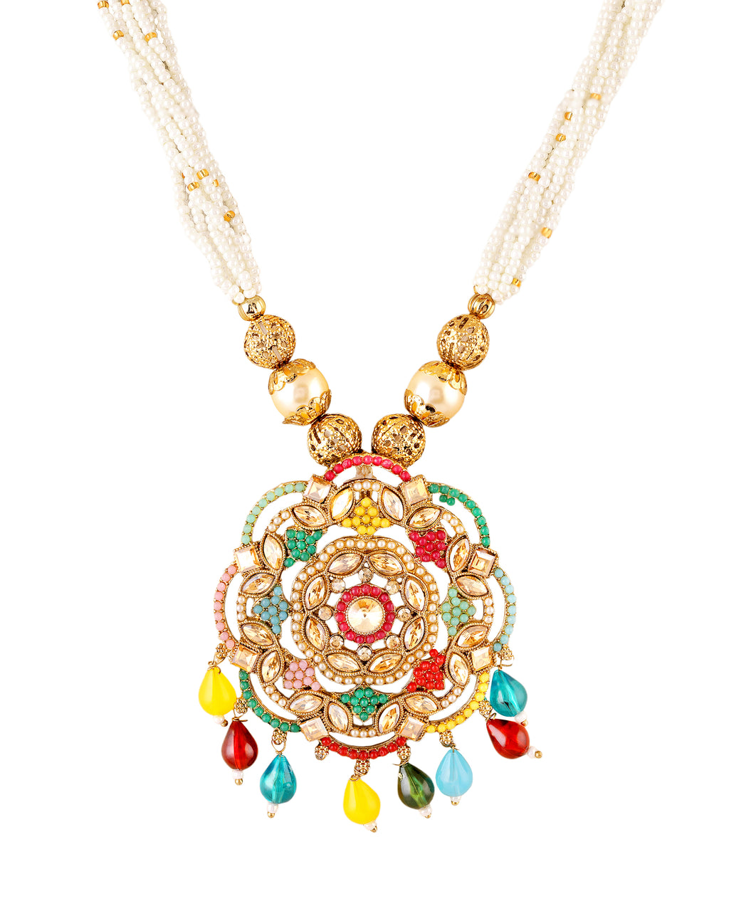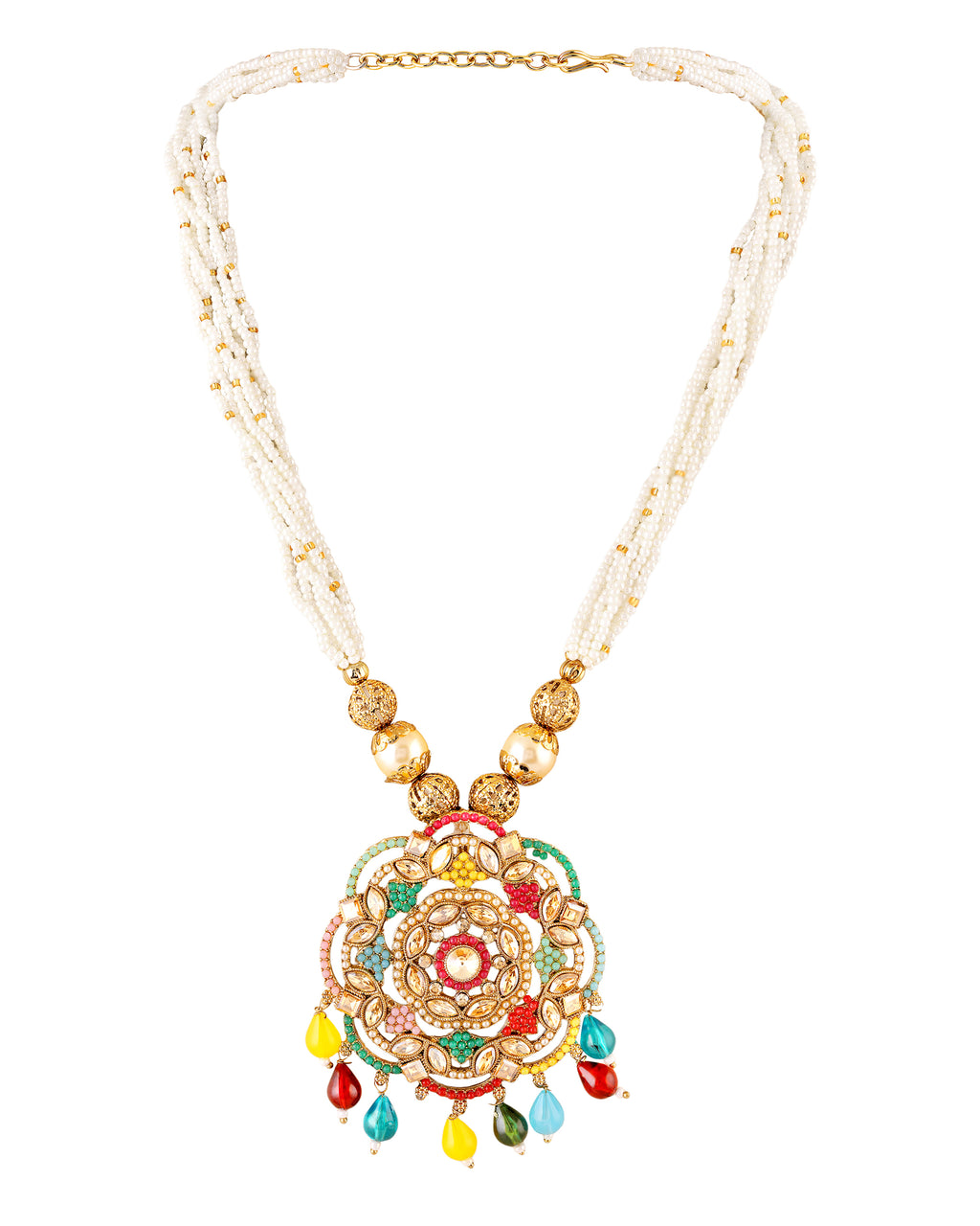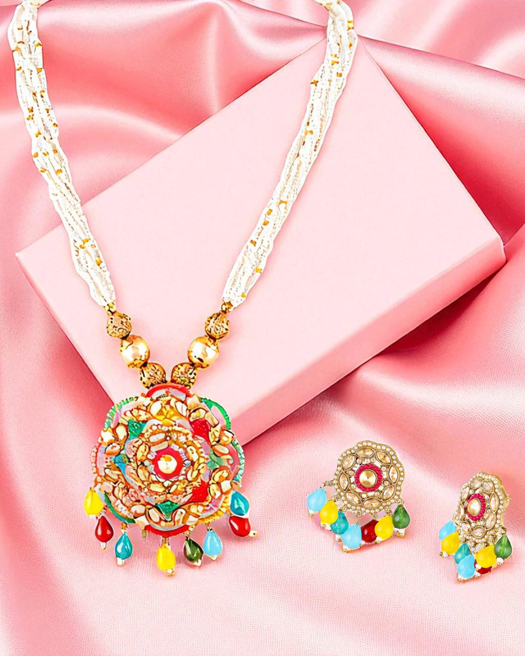 - Premium Traditional Design – Beautiful kundan-studded floral pendant with colorful beads for a rich ethnic appeal.