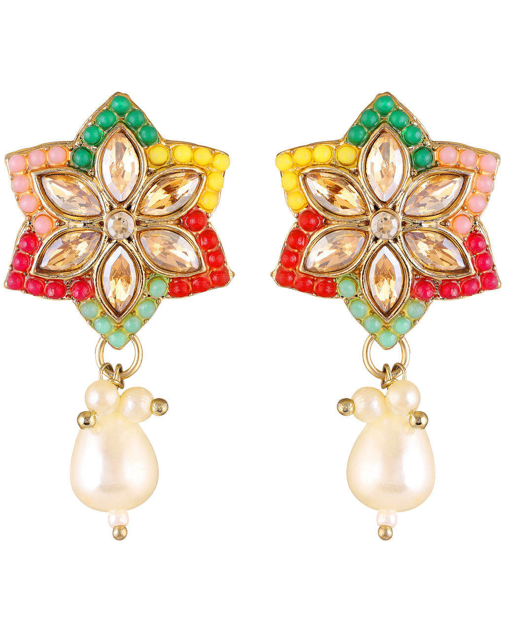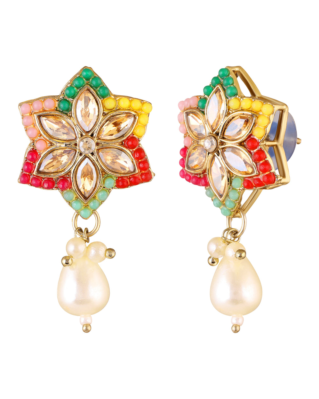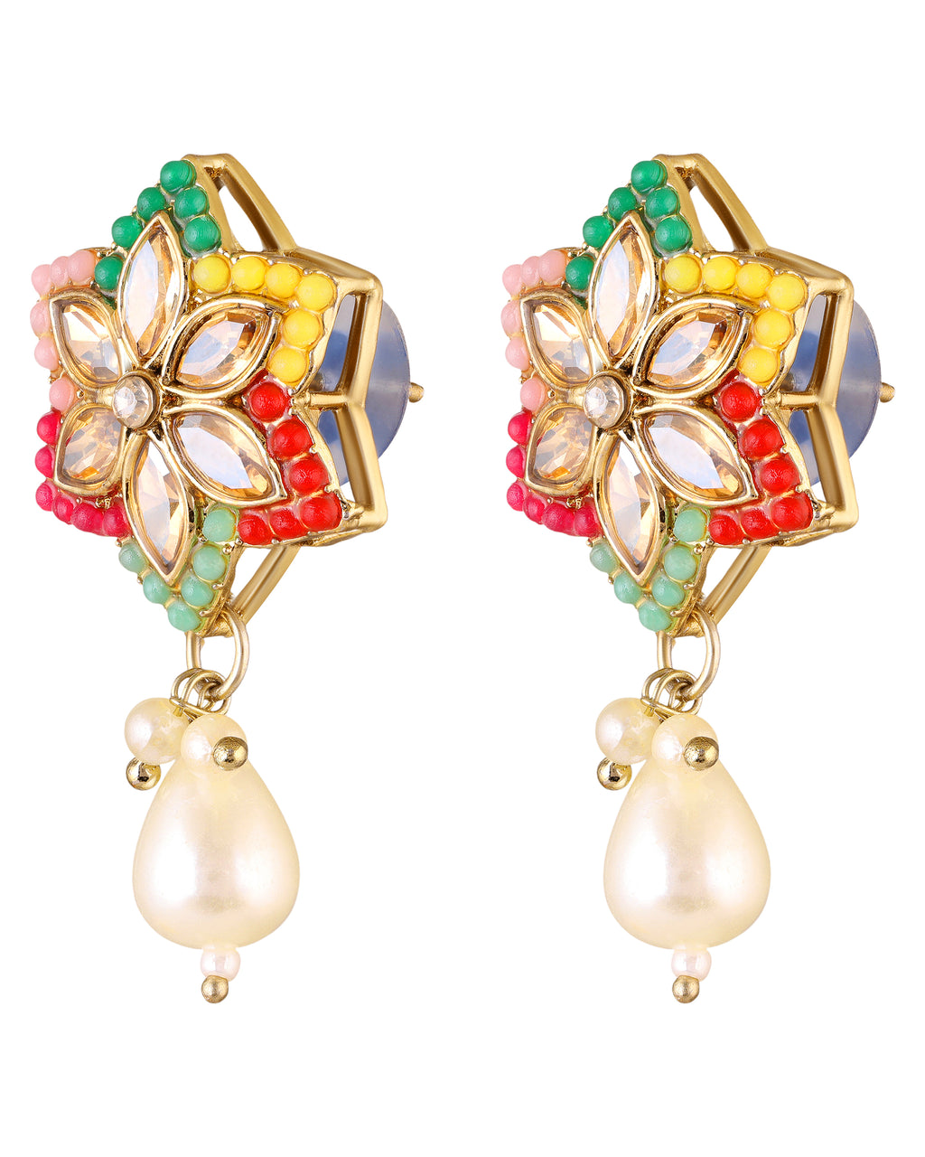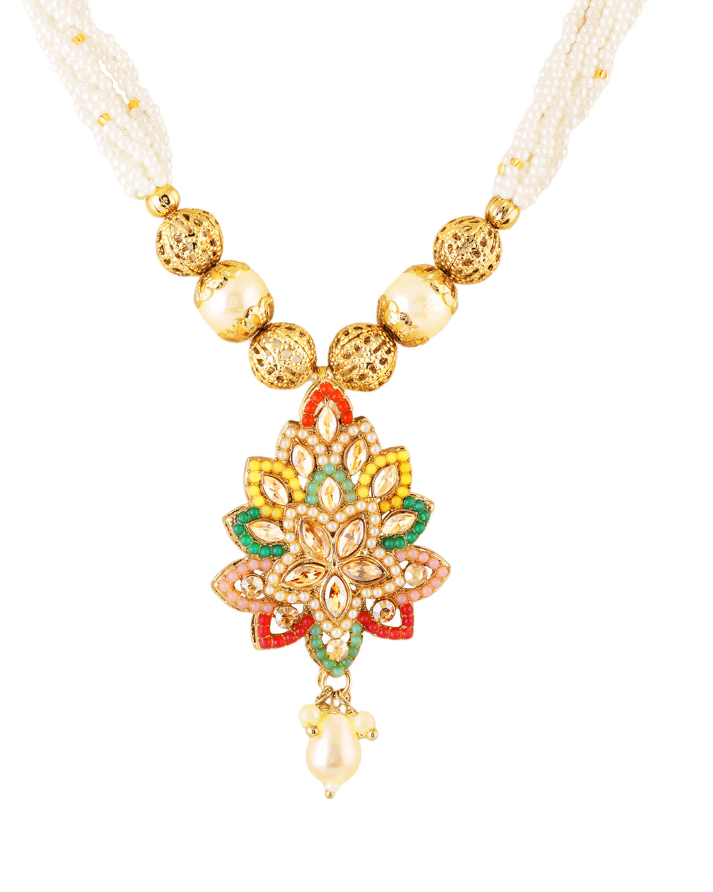 - Exquisite Design: Traditional kundan necklace set with multicolor stones and pearl detailing for a regal ethnic look.
