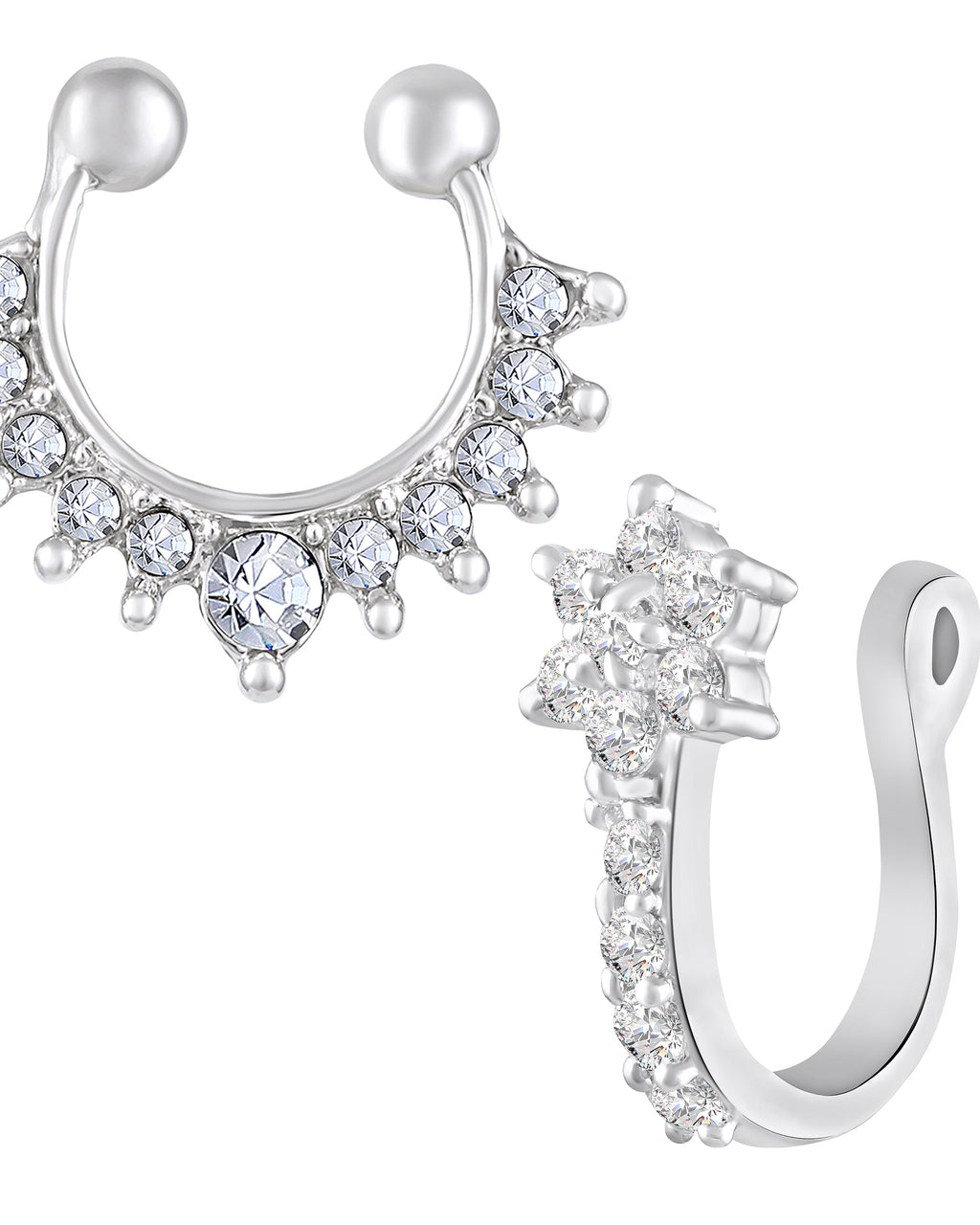 - Combo of 2 Shiny Crystals Piercing Nose Rings Set